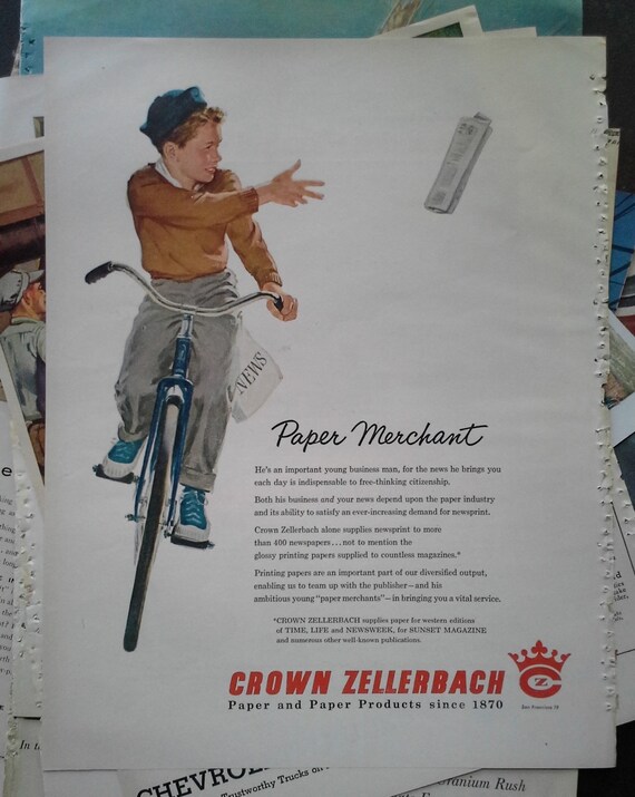 Teen Newspaper Delivery Boy On Bike 50s Blue Beanie Blue Etsy Finland
